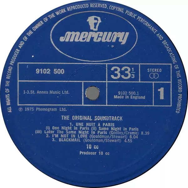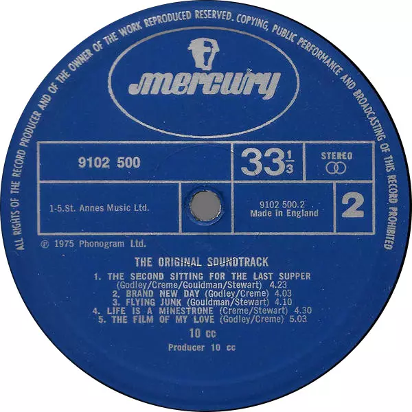 10cc: The Original Soundtrack versione su vinile LP in standard edizione. Questa particolare edizione è stata pubblicata in REGNO UNITO nella casa editrice Mercury in data 5. marzo 1975.