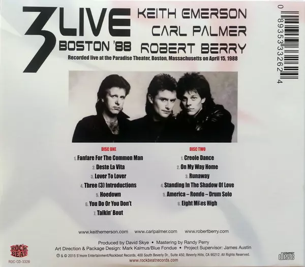 Artista | Keith Emerson | 3 | Carl Palmer | Robert Berry |