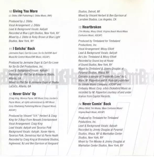 Mixed By Franklyn Grant, Rodney Jerkins | Producer, Music By [All] Rodney Jerkins | Rap [Raps], Vocals [Ad-Libs] Aaliyah, Rodney Jerkins | Recorded By Mike Rew | Written-By Japhe Tejeda, Rodney Jerkins