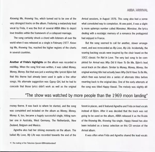 ABBA: Arrival versione su CD in rimasterizzati edizione. Questa particolare edizione è stata pubblicata in Europa nella casa editrice Polar in data 31. gennaio 2006.