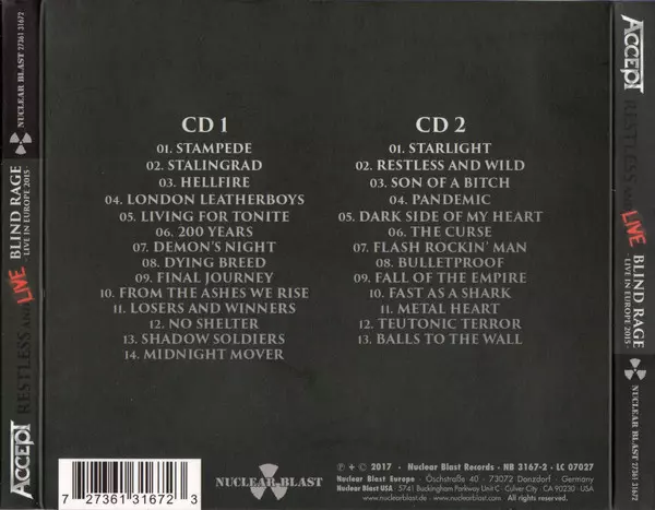 | Titolo | Restless And Live (Blind Rage - Live In Europe 2015) DIGI |