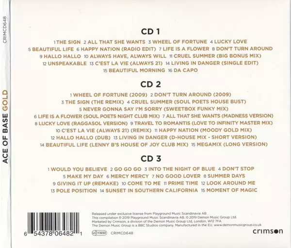 Crimson Gold presents Ace Of Base "Gold", the only Ace Of Base compilation you will ever need. Ace Of Base are one of the most successful pop groups, dominating the charts in the 1990s and releasing unmissable pop singles, including 10 UK Top 40 singles. The 3CD collection is the definitive career compilation, featuring remixes and hidden gems. ...
