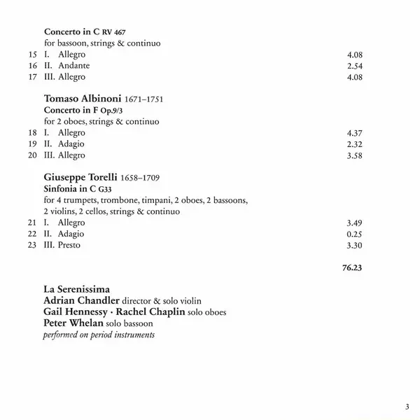 Concerto In F, Op. 9/3, For 2 Oboes, Strings & Continuo | 11:07 min | |