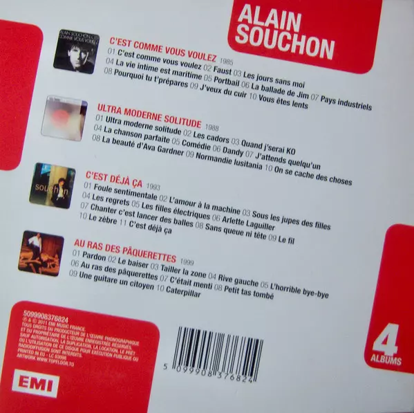 Alain Souchon: 4 Albums versione su 4CD/Set di cofanetti in standard edizione. Questa particolare edizione è stata pubblicata in Francia nella casa editrice EMI in data 15. agosto 2018. Album comprende generi Pop e Chanson.