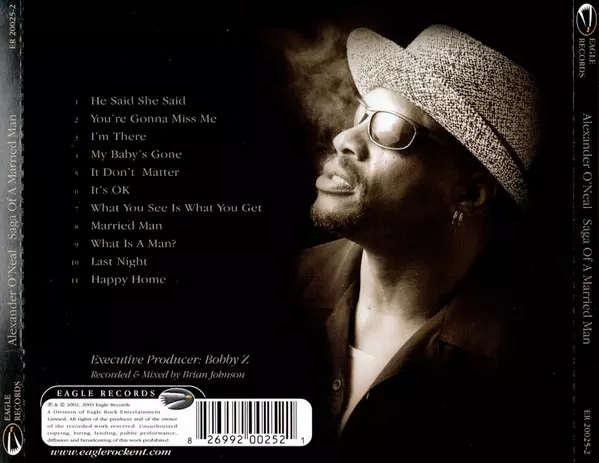 Alexander O'Neal: Saga Of A Married Man versione su CD in standard edizione. Questa particolare edizione è stata pubblicata in Stati Uniti nella casa editrice Eagle Records in data 9. settembre 2003. Album comprende generi Funk / Soul, Hip Hop, Soul e Contemporary R&B.
