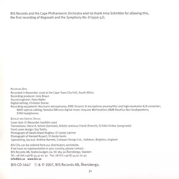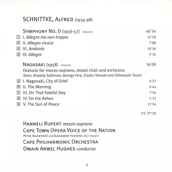 | Artista | Alfred Schnittke | Owain Arwel Hughes | Cape Philharmonic Orchestra | Hanneli Rupert | Cape Town Opera Voice Of The Nation |