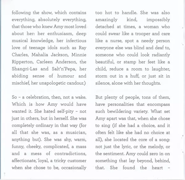 Bass David Swift (6) | Drums Gilson Lavis | Guitar Mark Flanagan | Saxophone Lisa Graham, Phil Veacock | Vocals Amy Winehouse | Written-By Amy Winehouse