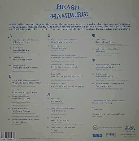 | Artista | André Heller | Ernst Molden | Voodoo Jürgens | Der Nino Aus Wien | Anna Mabo | Ursula Strauss | Das Frauenorchester | Neue Wiener Concert Schrammeln | Tini Kainrath | Marco Michael Wanda |