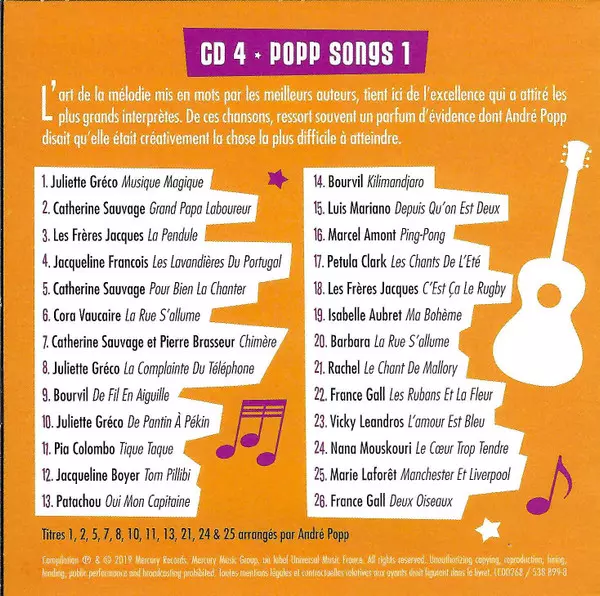 | CD 4: Popp Songs 1 (L'Amour De La Mélodie, Des Mots Et Des Interprètes) | |||