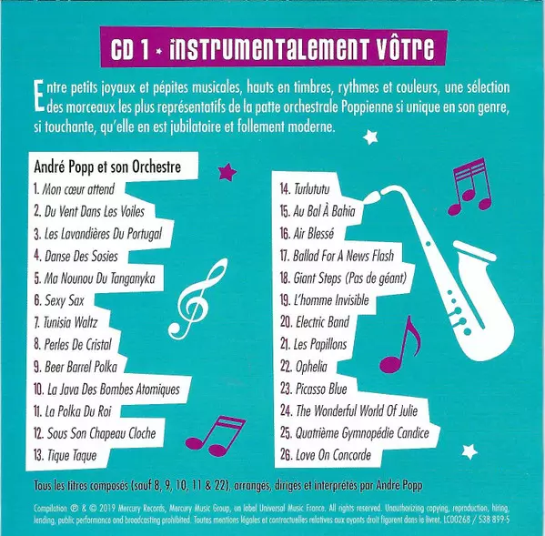 | CD 1: Instrumentalement Vôtre (Les Disques D'André Popp Et Son Orchestre [1955–76) | |||
