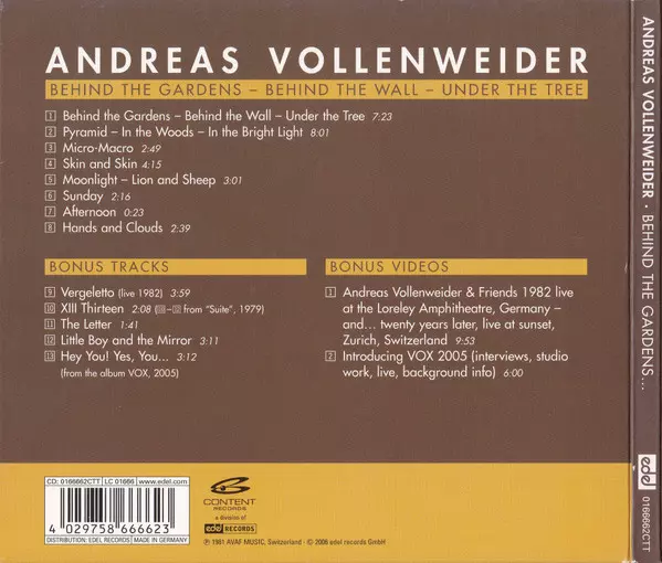 | Titolo | Behind The Gardens - Behind The Wall - Under The Tree DIGI |