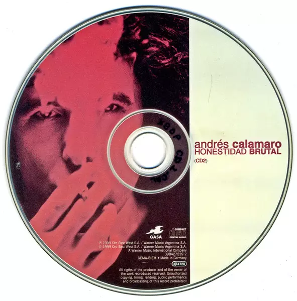 Andrés Calamaro: Honestidad Brutal versione su 2CD in standard edizione. Questa particolare edizione è stata pubblicata in Spagna nella casa editrice GASA in data 9. aprile 1999. Album comprende generi Rock, Pop, Folk, World, & Country, Musica latina, Pop Rock, Blues-Rock e Tango.