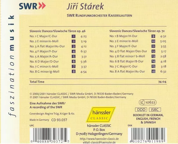 | Artista | Antonín Dvořák | SWR-Rundfunk-Orchester Kaiserslautern | Jiří Stárek |