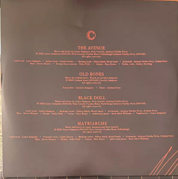 Backing Vocals Mahalia Smith, Micah Smith (6) | Bass Javert Haynes | Drums, Percussion Ibiko Pelle | Guitar Ross Burns | Keyboards Graham Scott (4), Jackson Fairfax-Perry | Lead Vocals Lance Sampson | Music By, Lyrics By Erin Costelo, Jackson Fairfax-Perry, Lance Sampson | Violin, Viola Kinley Dowling | Voice [Spoken Word] Carolyn Fowler