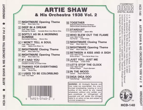 CD The Uncollected Artie Shaw And His Orchestra Vol. 2, 1938