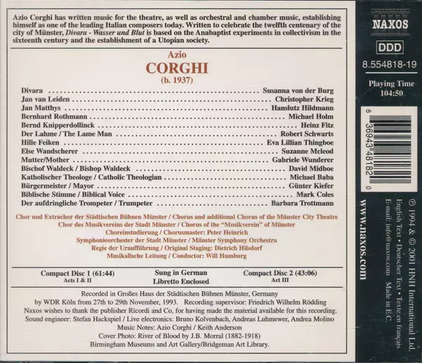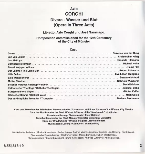 | Artista | Will Humburg | Michael Holm | Azio Corghi | Susanna Von Der Burg | Christopher Krieg | Hanslutz Hildmann | Heinz Fitz | Robert Schwarts | Chor Und Extrachoir Der Städtischen Bühnen Münster | Symphonie-Orchester Münster |
