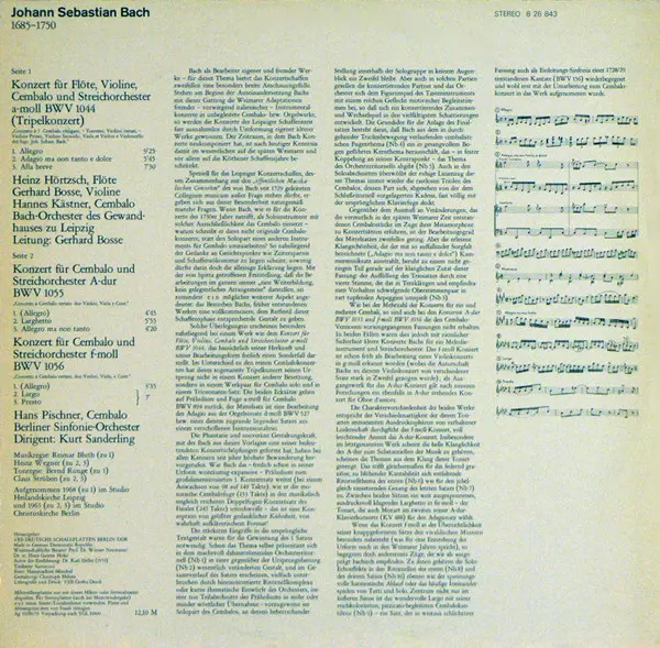 Artista | Johann Sebastian Bach | Kurt Sanderling | Hans Pischner | Berliner Sinfonie Orchester | Hannes Kästner | Bachorchester des Gewandhauses zu Leipzig | Heinz Hörtzsch | Gerhard Bosse |