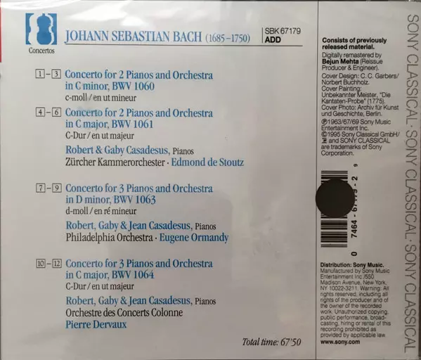 | Titolo | Concertos For 2 Pianos, BWV 1060 & BWV 1061 / Concertos For 3 Pianos, BWV 1063 & BWV 1064 |