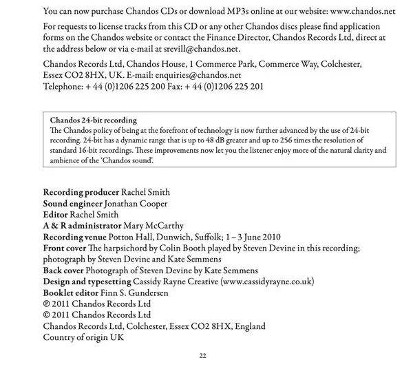 | Casa editrice | Chaconne | Chandos |