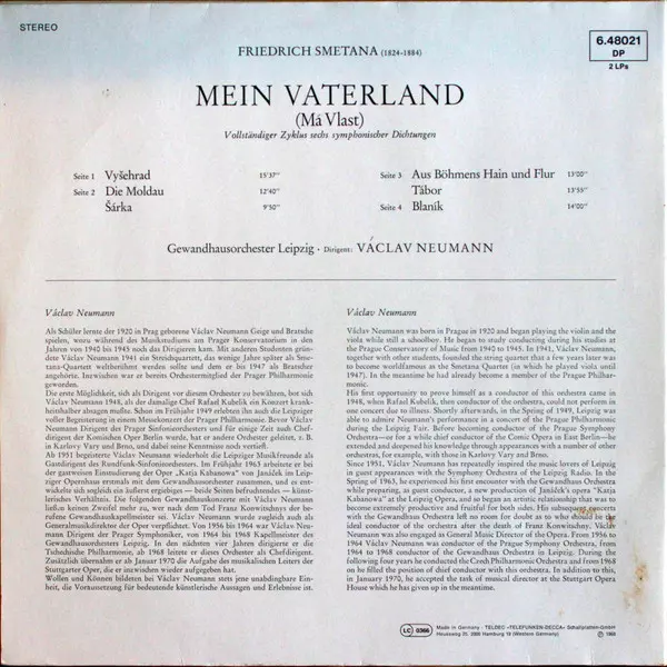 | Artista | Bedřich Smetana | Václav Neumann | Gewandhausorchester Leipzig |