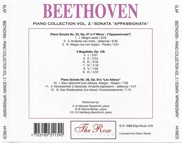 | Titolo | Piano Collection Vol. 2 / Sonata "Appassionata" |