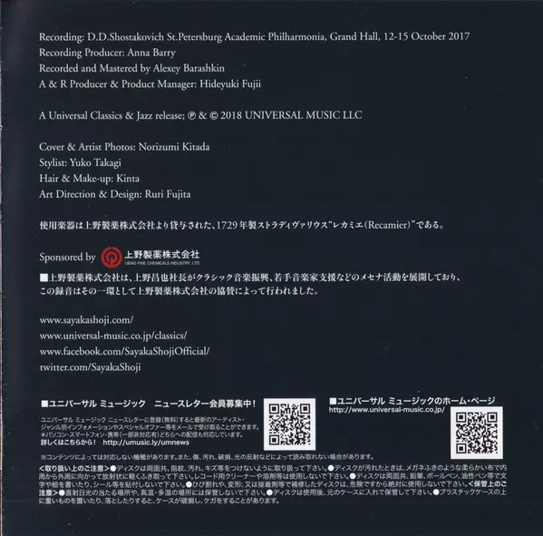 | Artista | Ludwig van Beethoven | Jean Sibelius | St. Petersburg Philharmonic Orchestra | Yuri Temirkanov | Sayaka Shoji |