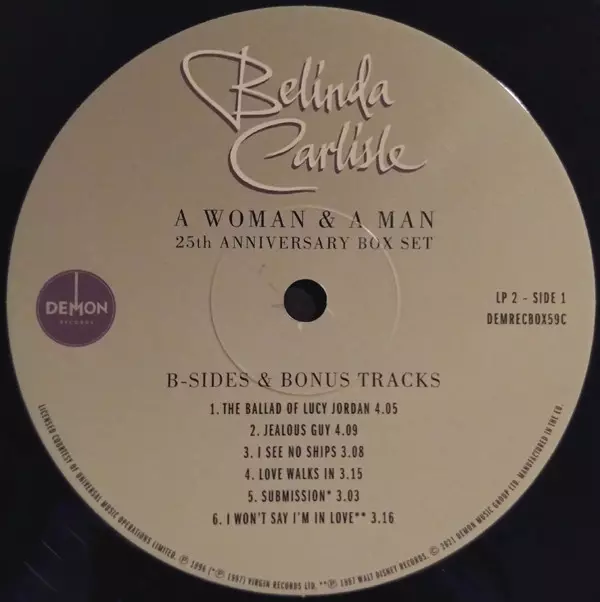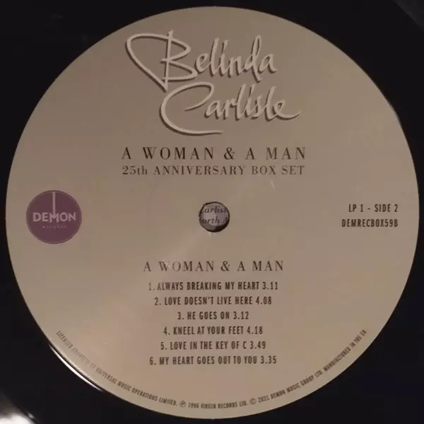 Belinda Carlisle: A Woman & A Man DLX | LTD versione su vinile 3LP/Set di cofanetti in deluxe limitati edizione. Questa particolare edizione è stata pubblicata in Europa nella casa editrice Demon Records in data 10. settembre 2021. Album comprende generi Rock, Pop, Vocale, Ballata e Pop Rock. 180g 25th Anniversary Limited Deluxe Edition.