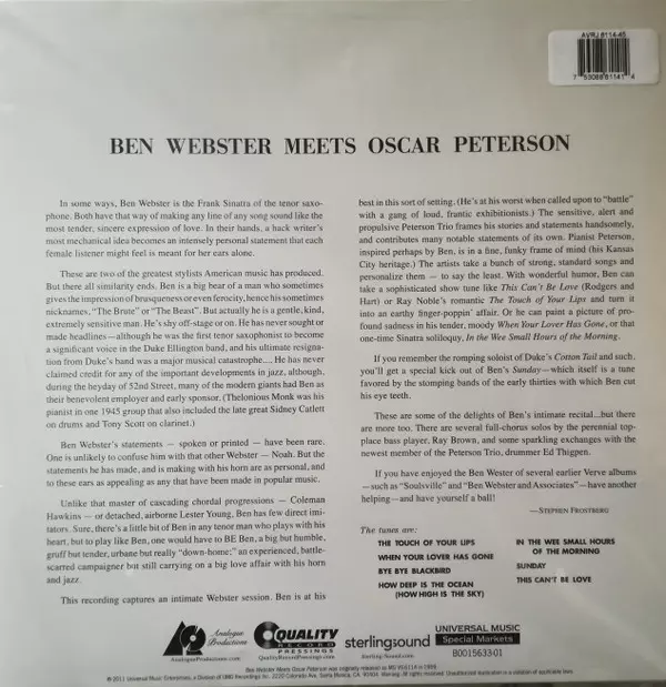 | Titolo | Ben Webster Meets Oscar Peterson LTD |