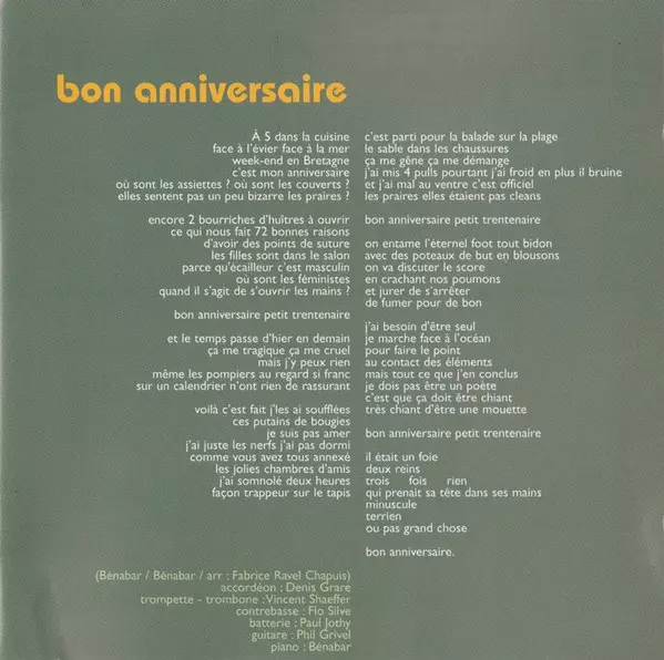 Bénabar, whose real name is Bruno Nicolini, is a French singer-songwriter known for his work in the chanson française genre. He began his career in the entertainment industry as a script supervisor and assistant director before shifting his focus to music. Bénabar's lyrics are ofte...