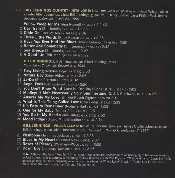 | 2-1 | Bill Jennings Quintet: Willow Weep For Me | ||
