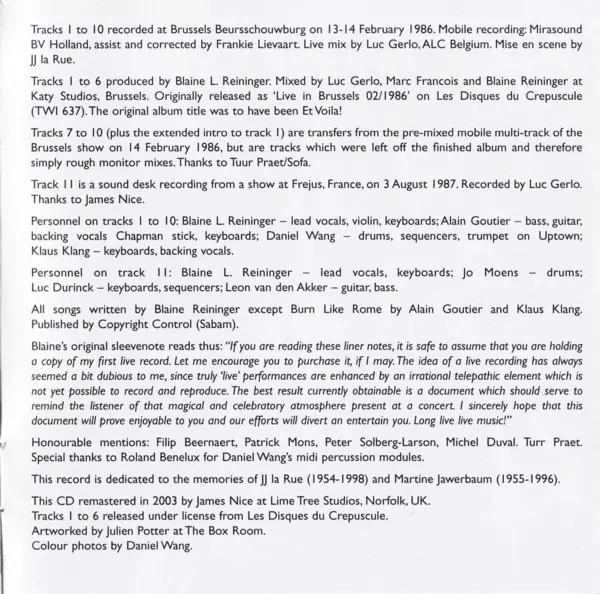 | Titolo | Live In Brussels Bis |