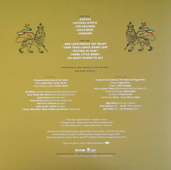 Exodus is an album by Bob Marley & The Wailers , released in 1977. It was the group's fifth album and third released on Island Records. The album was recorded in London and produced by Chris Blackwell and Bob Marley. Exodus reached number 20 on the Billboard 200 and number 15 on the UK Albums Chart. In 2001, it received a gold certificate from t...