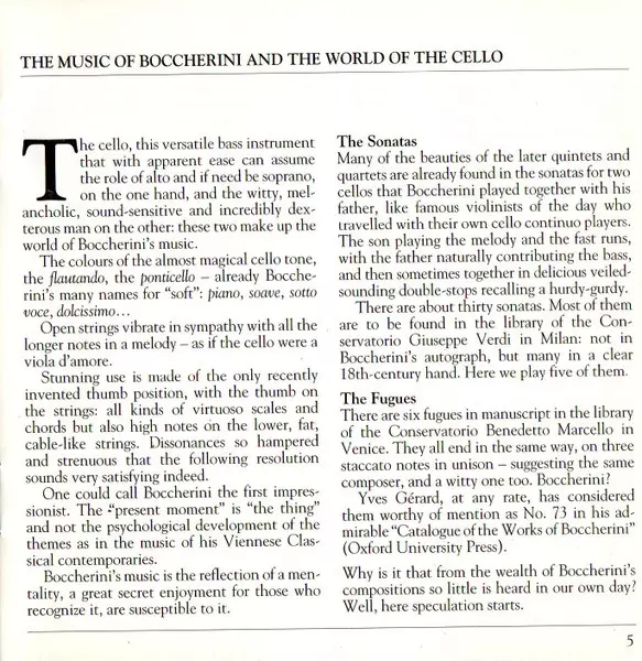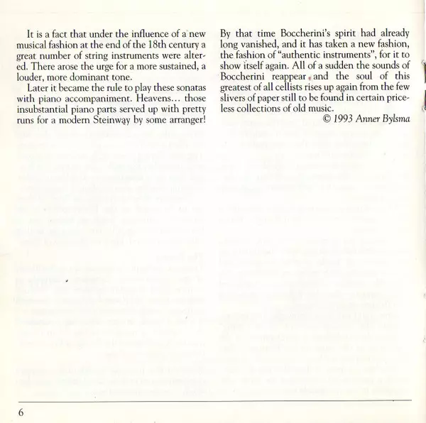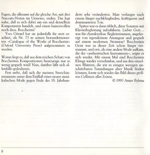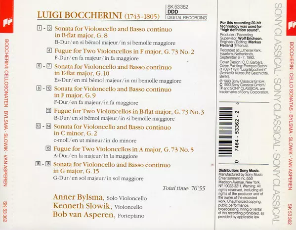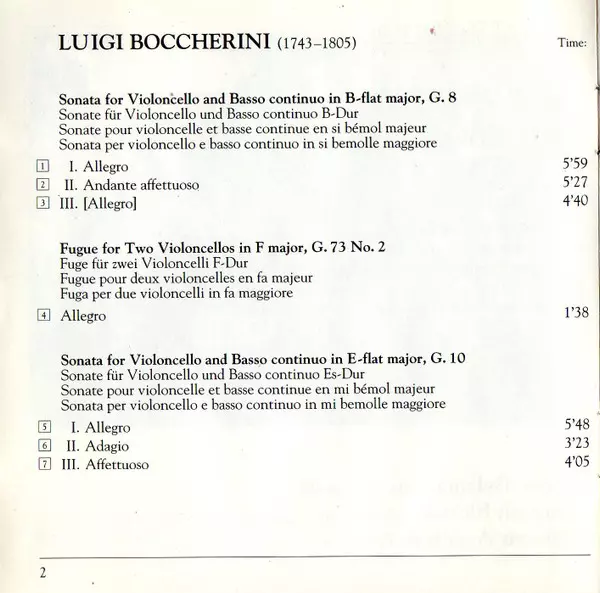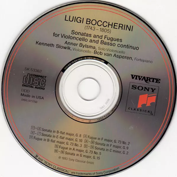 | Artista | Luigi Boccherini | Anner Bylsma | Bob van Asperen | Kenneth Slowik |