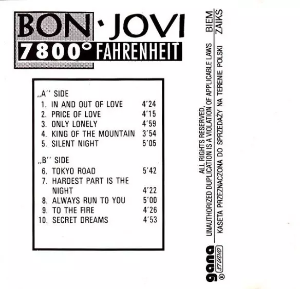VG+ VG+ Ok, confezione leggermente usurata, jiný design kazety, popsaná, bootleg
