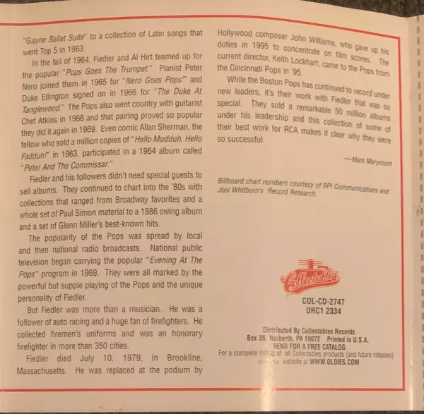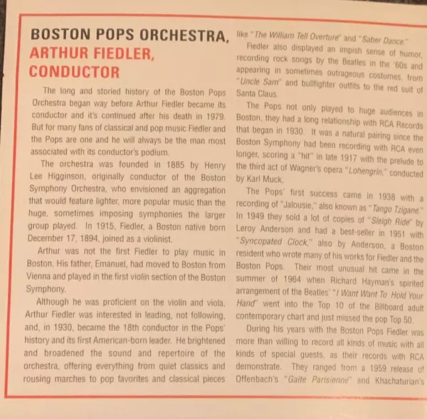 | Artista | Boston Pops Orchestra | Arthur Fiedler |