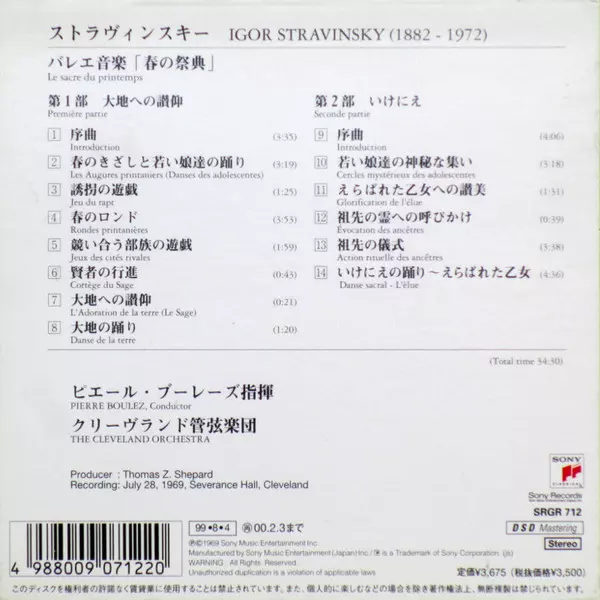 | Titolo | Boulez Conducts Stravinsky's Le Sacre Du Printemps |
