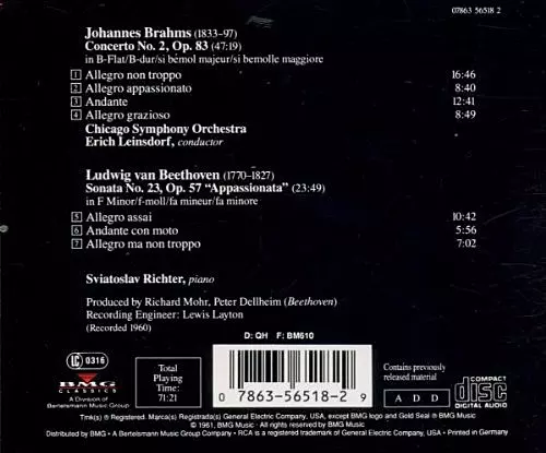 | Artista | Ludwig van Beethoven | Johannes Brahms | Sviatoslav Richter | Chicago Symphony Orchestra | Erich Leinsdorf |