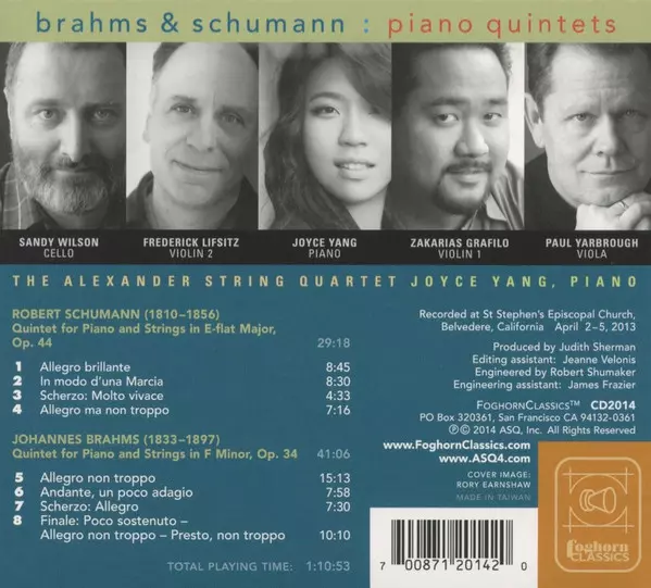 | Artista | Johannes Brahms | Robert Schumann | Alexander String Quartet | Joyce Yang |