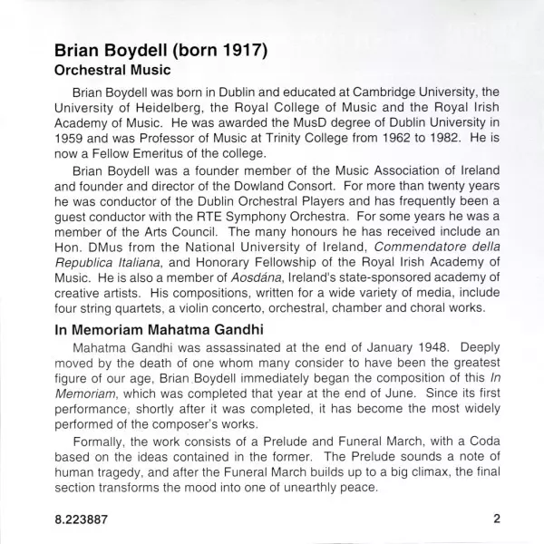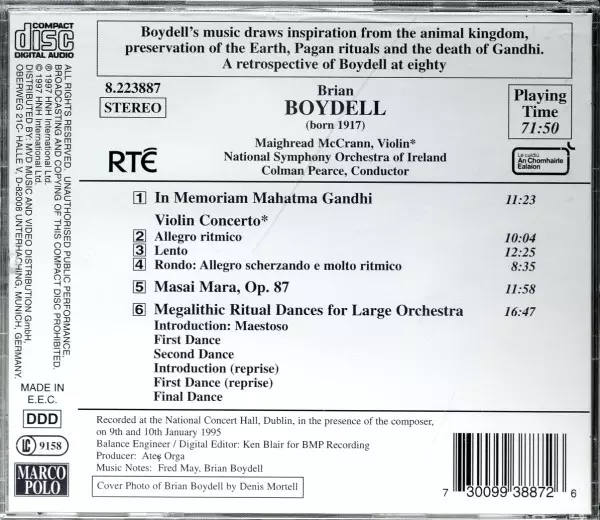 | Artista | Colman Pearce | National Symphony Orchestra Of Ireland | Brian Boydell | Maighread McCrann |