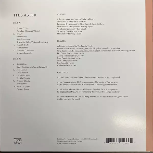 | Titolo | This Aster: Adaptations Of Emile Nelligan |