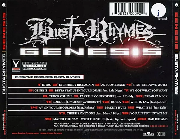 Východopobřežní rapper Busta Rhymes z Brooklynu vytvořil s "Genesis" jeden ze zásadních hiphopových disků roku 2002 - rychlý, phat, šílený, ničící basové reproduktory, bitchy, funky, dobrý.