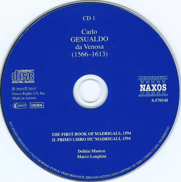 Carlo Gesualdo: The Complete Madrigals versione su 7CD/Set di cofanetti in standard edizione. Questa particolare edizione è stata pubblicata nella casa editrice Naxos in data 24. settembre 2013. Album comprende generi Musica classica, Musica barocca e Renaissance Music.