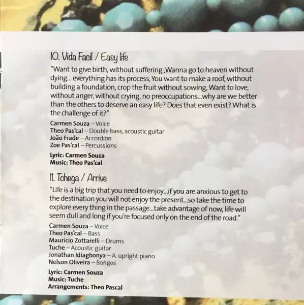 Acoustic Guitar Tuche | Bass, Double Bass, Percussion Theo Pas'cal | Drums Mauricio Zottarelli | Lyrics By, Music By Carmen Souza | Voice Carmen Souza