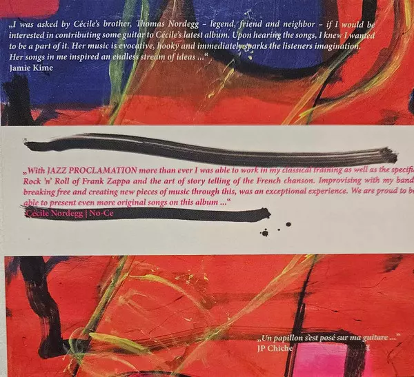 Cécile Nordegg: Jazz Proclamation Vol.1 + 2 versione su CD in standard edizione. Questa particolare edizione è stata pubblicata in Austria nella casa editrice Rossori Music in data 16. giugno 2018. Album comprende generi Pop, Jazz, Contemporary Jazz e Chanson.