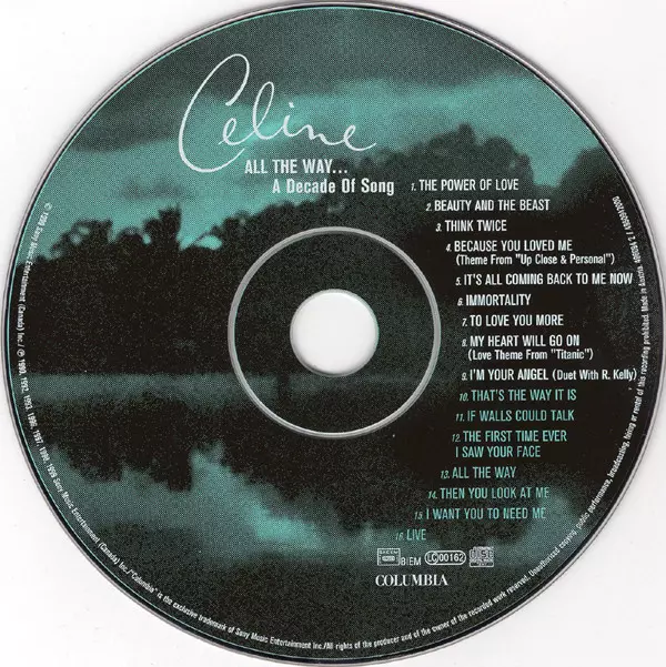 Céline Dion: All The Way... A Decade Of Song versione su CD in standard edizione. Questa particolare edizione è stata pubblicata in Europa nella casa editrice Columbia in data 19. aprile 2004.