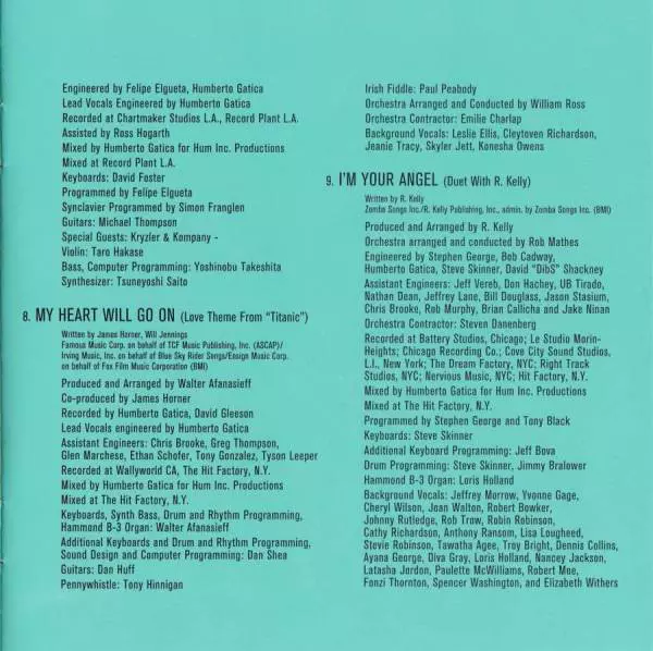 Arranged By Walter Afanasieff | Backing Vocals Claytoven Richardson, Conesha Owens, Jeanie Tracy, Leslie Ellis, Skyler Jett | Co-producer James Horner | Computer [Programming] Dan Shea | Conductor William Ross | Contractor [Orchestra Contractor] Emile Charlap | Drum Programming [Drum And Rhythm Programming] Dan Shea | Engineer [Lead Vocals] Humberto Gatica | Fiddle [Irish] Paul Peabody | Guitar Dann Huff | Keyboards Dan Shea | Mixed By Humberto Gatica | Orchestrated By William Ross | Producer Walter Afanasieff | Recorded By David Gleeson, Humberto Gatica | Sound Designer [Sound Design] Dan Shea | Synth [Synth Bass] Dan Shea | Tin Whistle [Pennywhistle] Tony Hinnigan | Written-By James Horner, Will Jennings