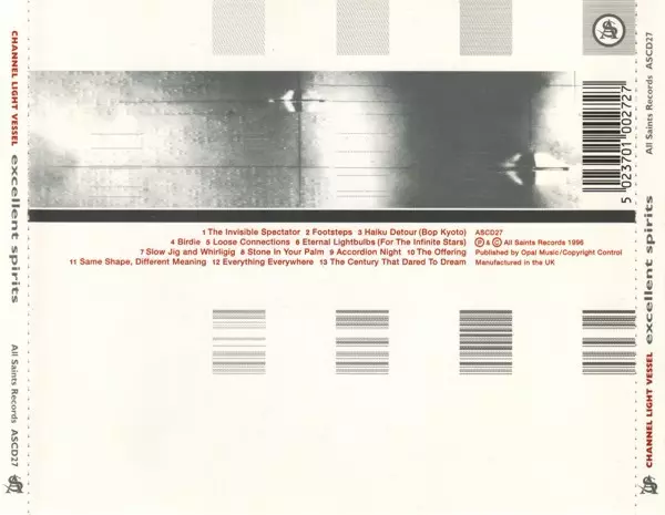 Channel Light Vessel: Excellent Spirits versione su CD in standard edizione. Questa particolare edizione è stata pubblicata in REGNO UNITO nella casa editrice All Saints Records (2) anno 1996. Album comprende generi Musica elettronica e Ambient.
