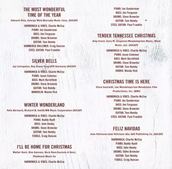 Bass Mark Burchfield | Drums Steve Brewster | Guitar Tom Hemby | Harmonica Charlie McCoy | Mandolin Wanda Vick | Piano Jason Coleman