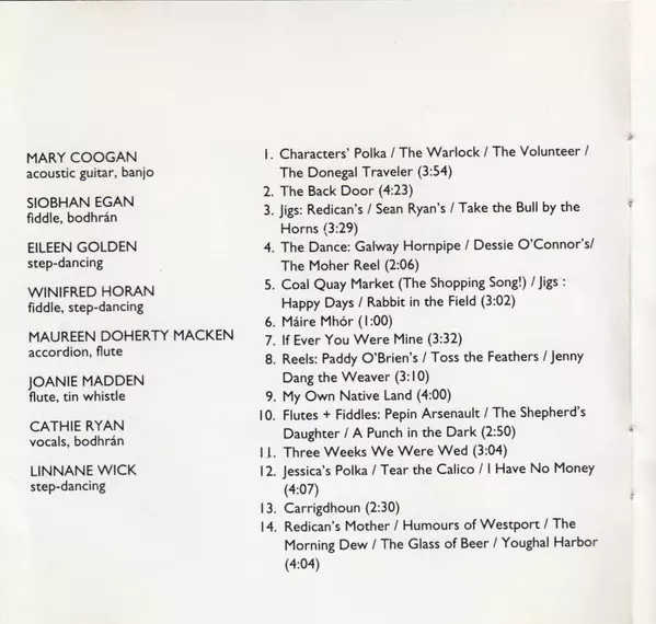 Accordion Maureen Doherty Macken | Acoustic Guitar Mary Coogan | Fiddle Siobhan Egan, Winifred Horan | Flute, Tin Whistle Joanie Madden | Vocals, Words By, Music By Cathie Ryan