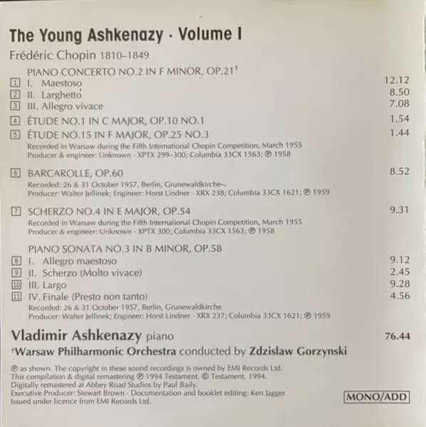 | Artista | Frédéric Chopin | Vladimir Ashkenazy | Orkiestra Symfoniczna Filharmonii Narodowej | Zdzisław Górzyński |